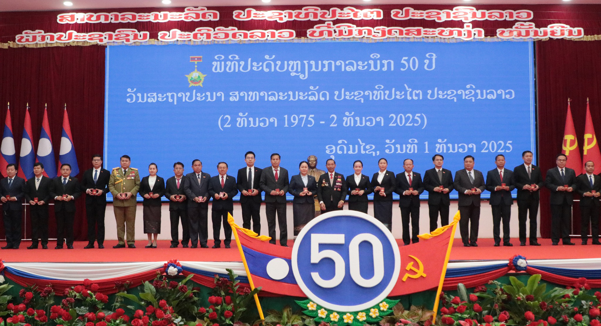 ວັນທີ 1 ທັນວາ 2025 ທີ່ ສະໂມສອນໃຫຍ່ຂອງແຂວງອຸດົມໄຊ ໄດ້ຈັດ ພິທີປະດັບຫຼຽນກາລະນຶກ 50 ປີ ວັນສະຖາປະນາ ສາທາລະນະລັດ ປະຊາທິປະໄຕ ປະຊາຊົນລາວ ໂດຍການເປັນປະທານຂອງ ສະຫາຍ ຄຳດີ ວົງລ້ອມ ຮອງເລຂາພັກແຂວງ, ປະທານສະພາປະຊາຊົນແຂວງ, ມີ ສະຫາຍ ປອ ວົງສະຫວັນ ໄຊຍະວົງ ຮອງເລຂາພັກແຂວງ, ປະທານຄະນະກຳມະການປົກຄອງແຂວງ, ມີບັນດາສະຫາຍຮອງເລຂາພັກແຂວງ; ຄະນະປະຈຳພັກແຂວງ; ຄະນະບໍລິຫານງານພັກແຂວງ; ອາດີດການນຳ; ຫົວໜ້າ-ຮອງຫົວໜ້າພະແນກການ, ອົງການ; ບໍລິສັດ, ລັດວິສາຫະກິດ, ນັກທຸລະກິດ, ຜູ້ປະກອບການ ຕະຫຼອດ ພະນັກງານ, ຄູ-ອາຈານ, ແພດໝໍ ແລະ ເຍົາວະຊົນ-ຊາວໜຸ່ມ ເຂົ້າຮ່ວມ.